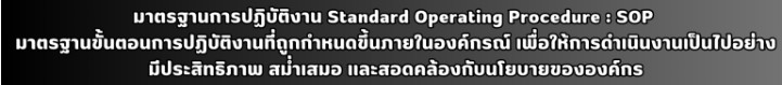 – มาตรฐานการปฏิบัติงาน (Standard Operating Procedure: SOP) มาตรฐาน